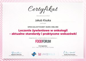Nazywam się Jakub Kluska i jestem dyplomowanym dietetykiem klinicznym pracującym w placówce medycznej. W swojej praktyce nie uznaję „diet cud” – opieram się wyłącznie na naukowych fundamentach i rzetelnej diagnostyce, rozumiejąc, jak zmienia się metabolizm i wyzwania zdrowotne po 30. roku życia. Moim celem jest nie tylko skuteczna redukcja masy ciała, ale przede wszystkim trwała poprawa Twojego zdrowia metabolicznego i komfortu życia. Specjalizuję się w prowadzeniu pacjentów z chorobami dietozależnymi (jak insulinooporność czy cukrzyca) oraz w terapii przewlekłych, często bagatelizowanych problemów jelitowych i gastrycznych (m.in. SIBO, IMO, refluks). Pomogę Ci zrozumieć Twój organizm i odzyskać nad nim kontrolę.
